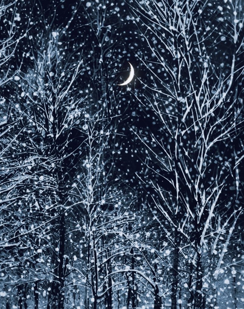 Midnight Moon began as a simple photograph I took last winter, on a day of heavy snowfall when the air felt electric from the cold. The finished image has traveled far from that original photo. I worked on it off and on during the year, coaxing it into the visual story I wanted to tell, but it wasn’t until I stood there listening to how people responded to it, and others of the same ilk, that I fully understood how much my work has shifted.